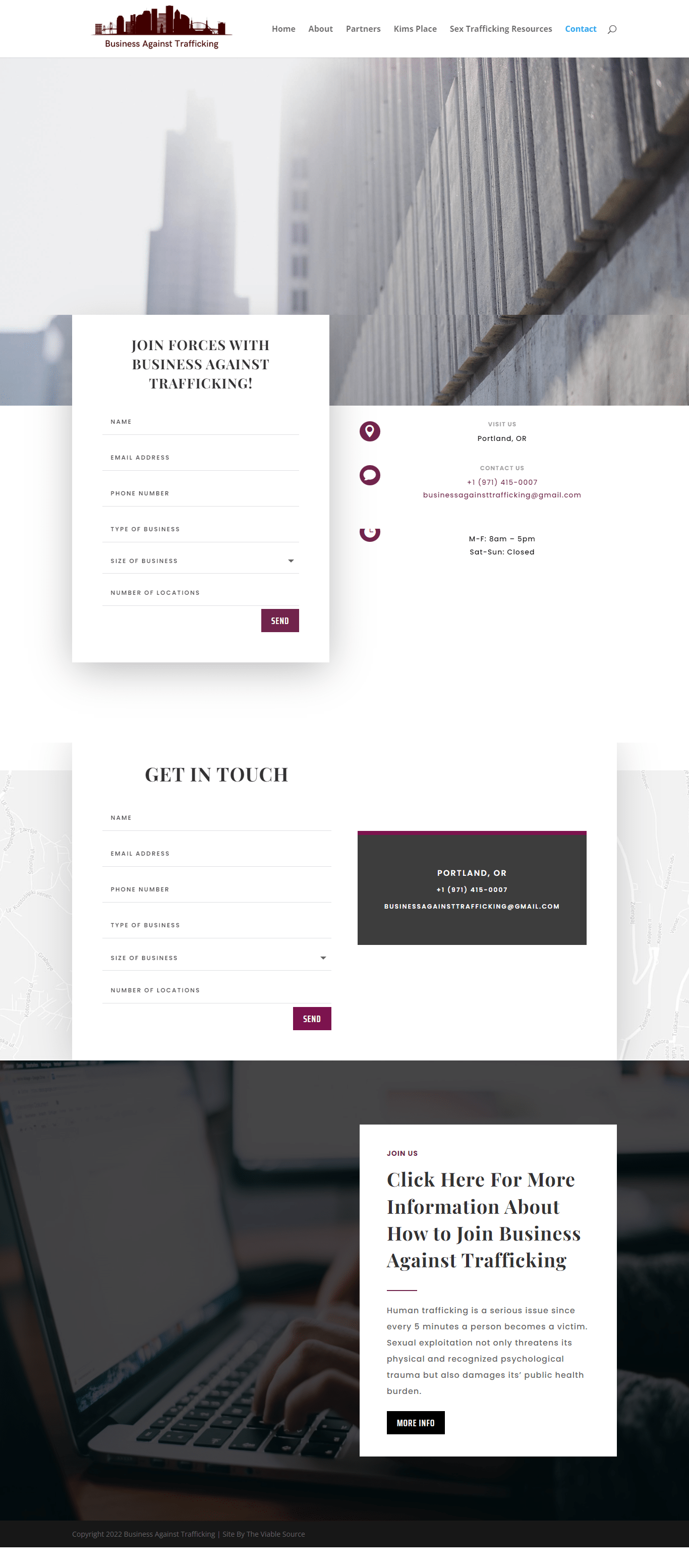 May 2022 Business Against Trafficking PROFESSIONAL BUSINESSES AGAINST TRAFFICKINGWORKING TO END HUMAN TRAFFICKING AND MODERN-DAY SLAVERY. Business Against Trafficking’s Home Page Back to Portfolio Work provided: R Website Upgrade R SEO R Site Management R Content Writing Quick Links Products Case Studies Media Library Knowledge Center Divi AI Community About Company Info Investor Relations Careers News and Press Events Customer Stories Site Info Legal Privacy Policy Cookies Settings Terms of Use Trademarks Trust Center Contact FAQ Contact Us Chat Now Newsletter Home Services Website Upgrades SEO and Marketing Website Audits Portfolio Blog Shop About Contact