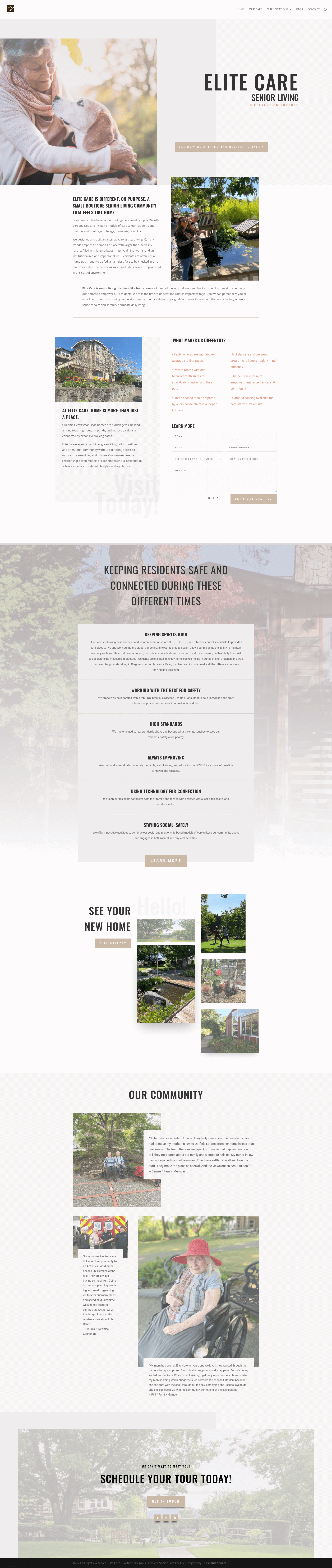 November 2020 Elite Care ELITE CARE IS A SMALL BOUTIQUE SENIOR LIVING COMMUNITY THAT FEELS LIKE HOME. Elite Care’s Home Page Back to portfolio Work provided: R Website Creation R Search Engine Optimization R Foundations/Citation Campaign. Get in the Know! Get on our newsletter to hear about upcoming events, workshops, and special offers! Name(Required) First Last Email(Required) Enter Email Confirm Email Are you interested in our newsletter to update you on events, community progress, workshops and more? Marketing and Tech Tips Networking Events Workshops and Courses Services and Offers Creative Visionary VIP Days No. please keep me off the list. Privacy(Required) I agree with the storage and handling of my data by this website. - Privacy Policy * Quick Links Portfolio Website Upgrade SEO and Marketing Website Audits Contact FAQ Contact Us Home Services Website Upgrades SEO and Marketing Website Audits Portfolio Blog Shop About Contact